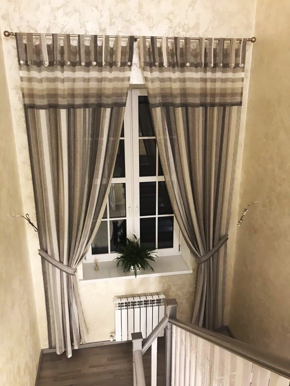 Высоту штор для круглопалочного карниза замеряют аналогично классическим шторам. Замер высоты для люверсов от верха трубы и до пола (замерить диаметр трубы).