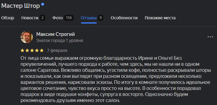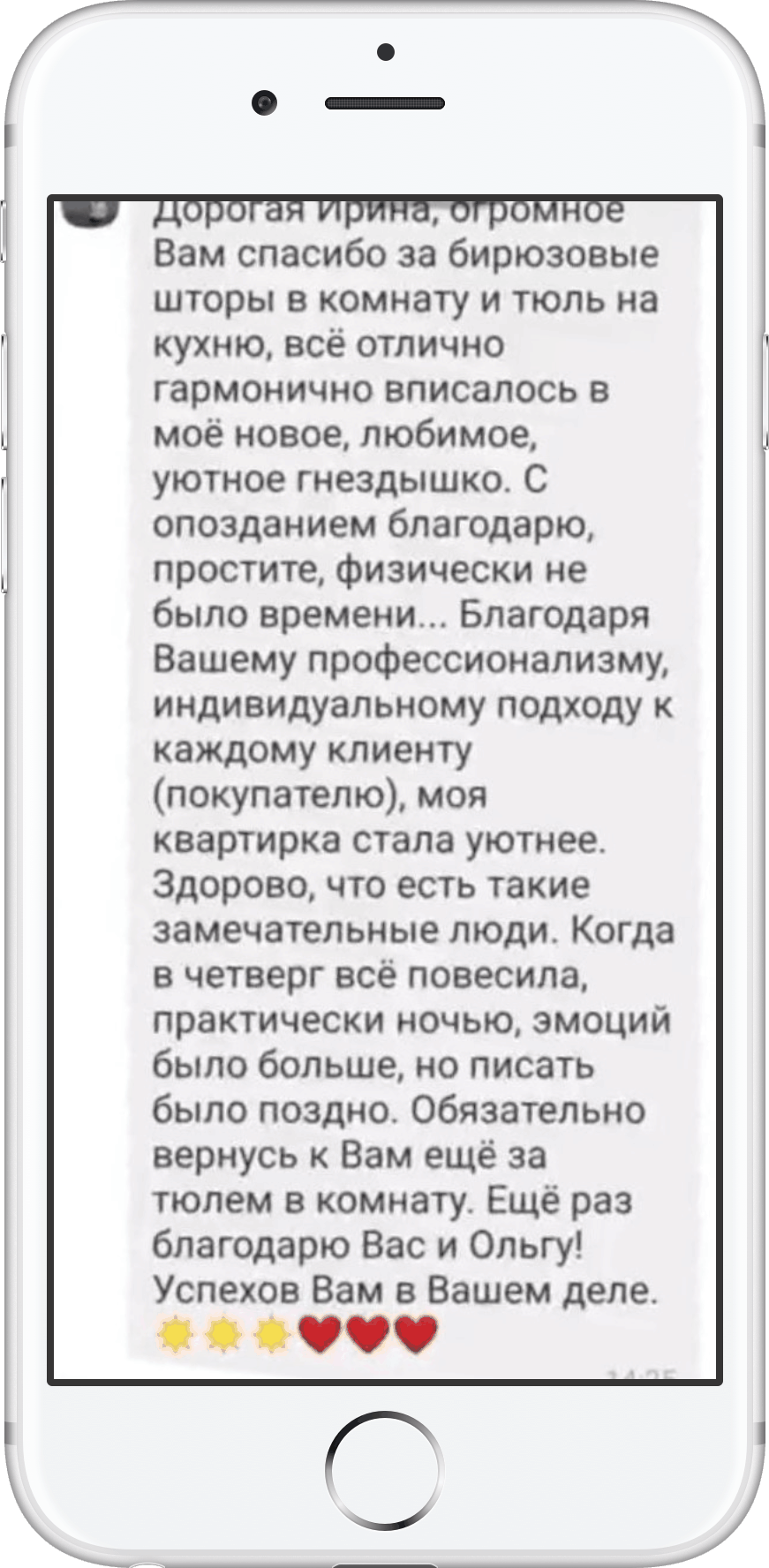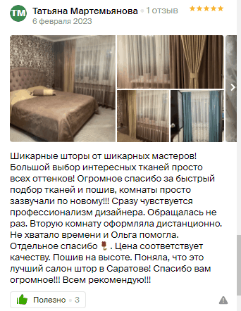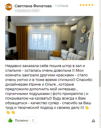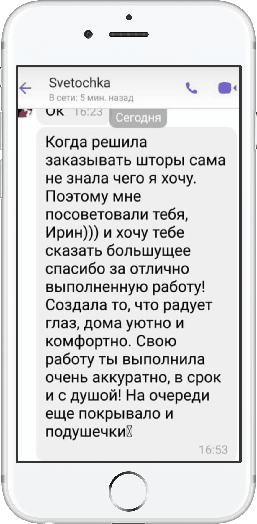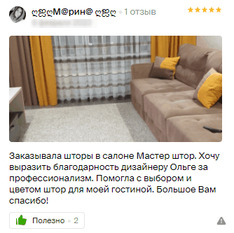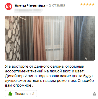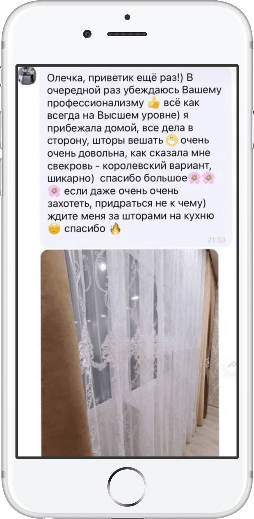 "Я считаю, что в наши шторы невозможно не влюбиться. Все клиенты возвращаются к нам благодаря высокому качеству нашего производства"